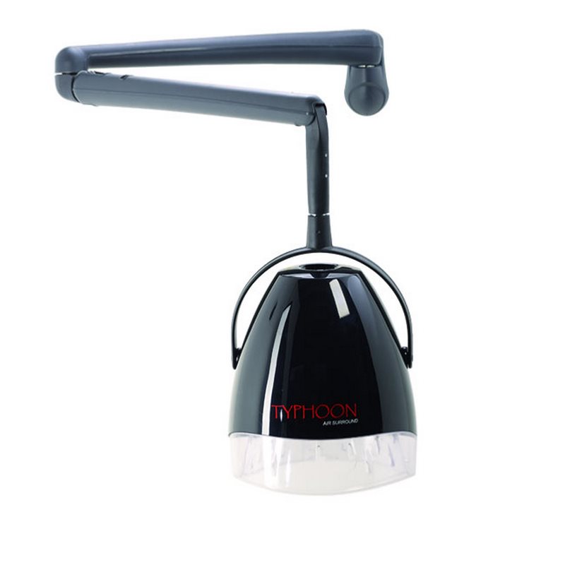 Le casque de séchage professionnel THYPHOON à 4 vitesses respecte les cheveux de vos clientes grâce à un séchage naturel par une ventilation indirecte. Doté d'une nouvelle technologie, le casque de séchage atteint immédiatement la température désirée tout en économisant l'énergie. Vous pouvez choisir le casque seul ou choisir le l'adapter sur une base pour le déplacer plus facilement ou avec un bras articulé pour le fixer au mur. un bras articulé pour le fixer au mur.