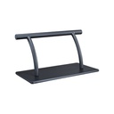 Schwarze Fußstütze aus Edelstahl mit rutschfester Gummibasis.