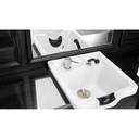 Le meuble barbier JULES BLACK s'intégrera parfaitement dans votre salon de coiffure barbier tout en apportant un style élégant et sophistiqué grâce à sa structure en bois naturel verni, ses moulures en bois massif vernis ainsi que son miroir à arête polie. De plus, il bénéficie de plusieurs tiroirs et étagères pour exposer vos produits et optimiser votre espace de travail. Le plan de travail est recouvert par un verre de protection étanche. Il est doté d'une vasque en céramique ainsi que d'une pomme de douche extensible.