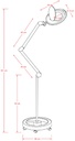 Estética lámpara lupa LED sobre soporte con ruedas. Sistema con brazo articulado.