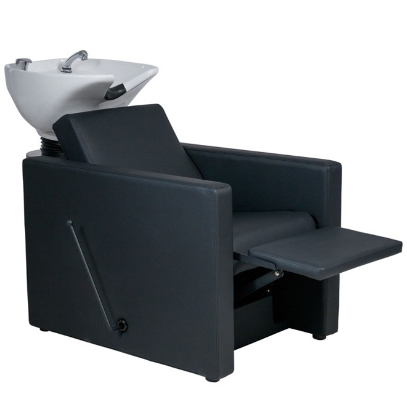 Bac shampoing relax doté d'un repose-jambes manuel rabattables, d'une vasque profonde et inclinable en 2 coloris au choix avec repose-nuque inclus. Idéal pour les salons de coiffure modernes et fonctionnels.