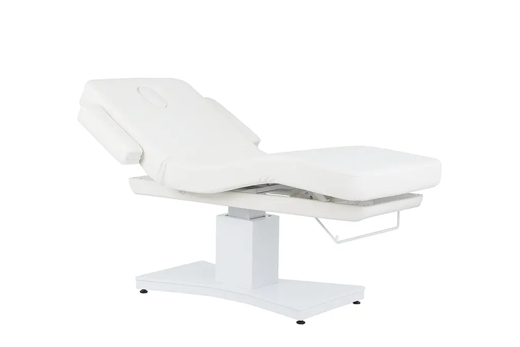 Confort et stabilité : Table de massage et de soins électrique à 3 moteurs pour régler la hauteur du lit esthétique, du dossier et du repose-jambes. Porte-rouleaux inclus