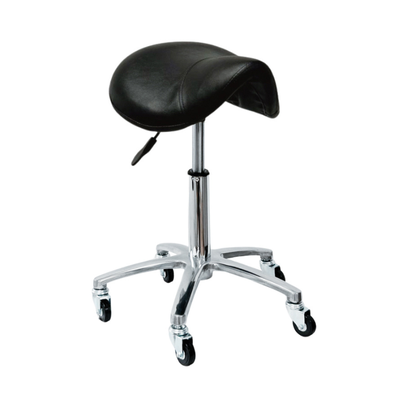 Le tabouret SANA sur roulettes est dotée d'une assise en forme de selle de cheval. Il est parfaitement adapté pour votre salon de coiffure, centre esthétique ou institut de beauté. Il est équipé d'un vérin à gaz pour un réglage facile de la hauteur. Son revêtement en PU noir de haute qualité et sa structure métallique sont faciles à nettoyer. Sa conception ergonomique assure une assise confortable et stable, favorisant une posture droite afin d'éviter les douleurs dorsales. De plus, ses 5 roulettes anti-cheveux garantissent une mobilité fluide et une longue durée de vie.