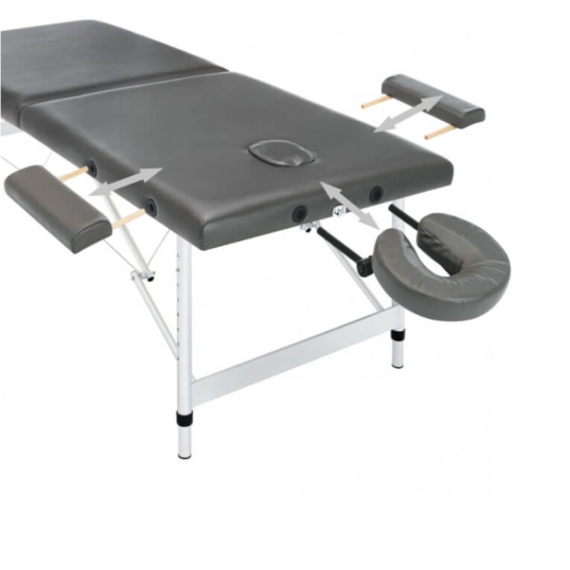 La table pliante en aluminium est dotée de deux sections ajustables, offrant une polyvalence maximale pour répondre aux besoins spécifiques des praticiens. Que ce soit pour les examens médicaux, les traitements ou les consultations, cette table permet des ajustements précis et un positionnement optimal pour le confort des patients.