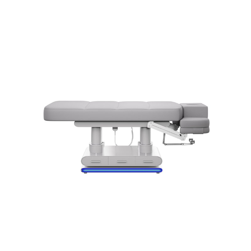 Le revêtement PU gris, doux au toucher et facile à nettoyer, est complété par des coutures carrées élégantes, gage de confort et de durabilité. LUMINY combine esthétique, fonctionnalité et performance pour tous types de soins.
