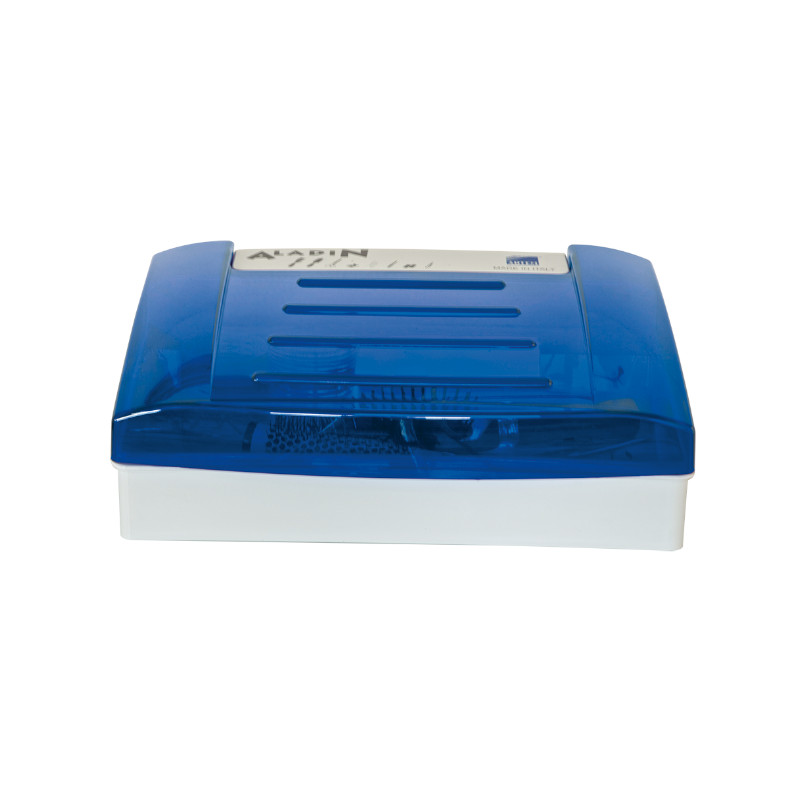 Le stérilisateur Aladin est un germicide qui exerce sa fonction grâce à une lampe UV qui s'allume automatiquement quand le volet supérieur est fermé.