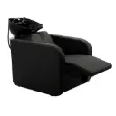 Bac à shampoing RELAX MASSAGE avec système de massage vibrant et repose-jambes électrique réglable via des boutons à l’arrière. Vasque profonde inclinable avec protège-nuque ergonomique pour un confort optimal.