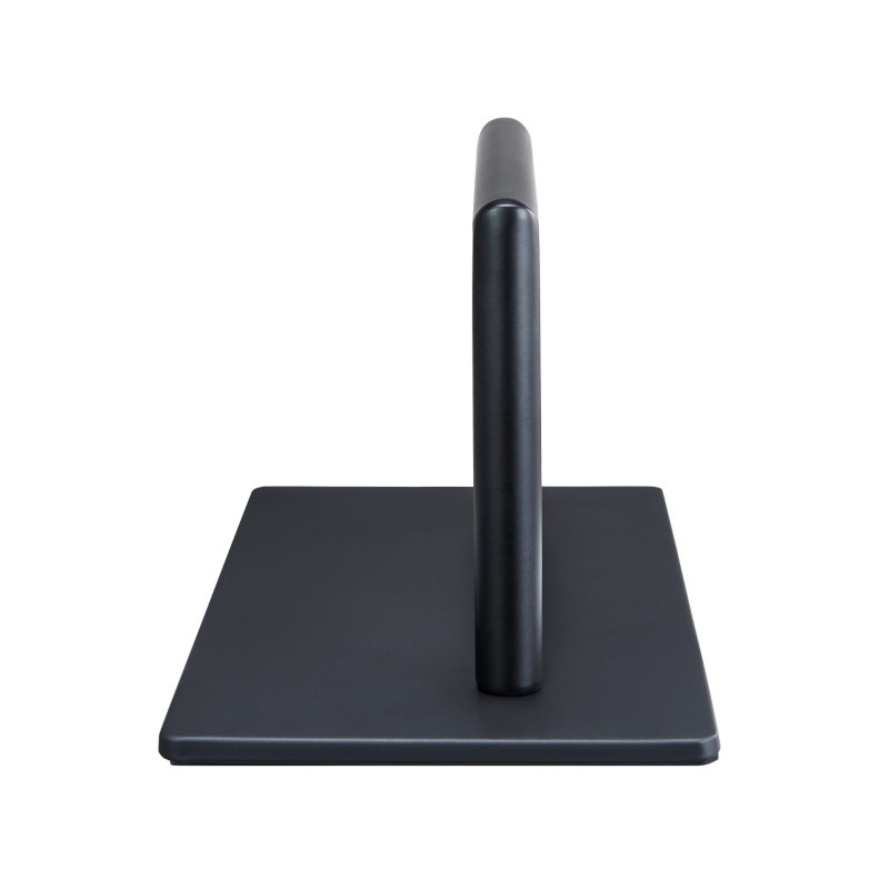 Repose-pied en acier inoxydable noir avec base en caoutchouc antidérapante.